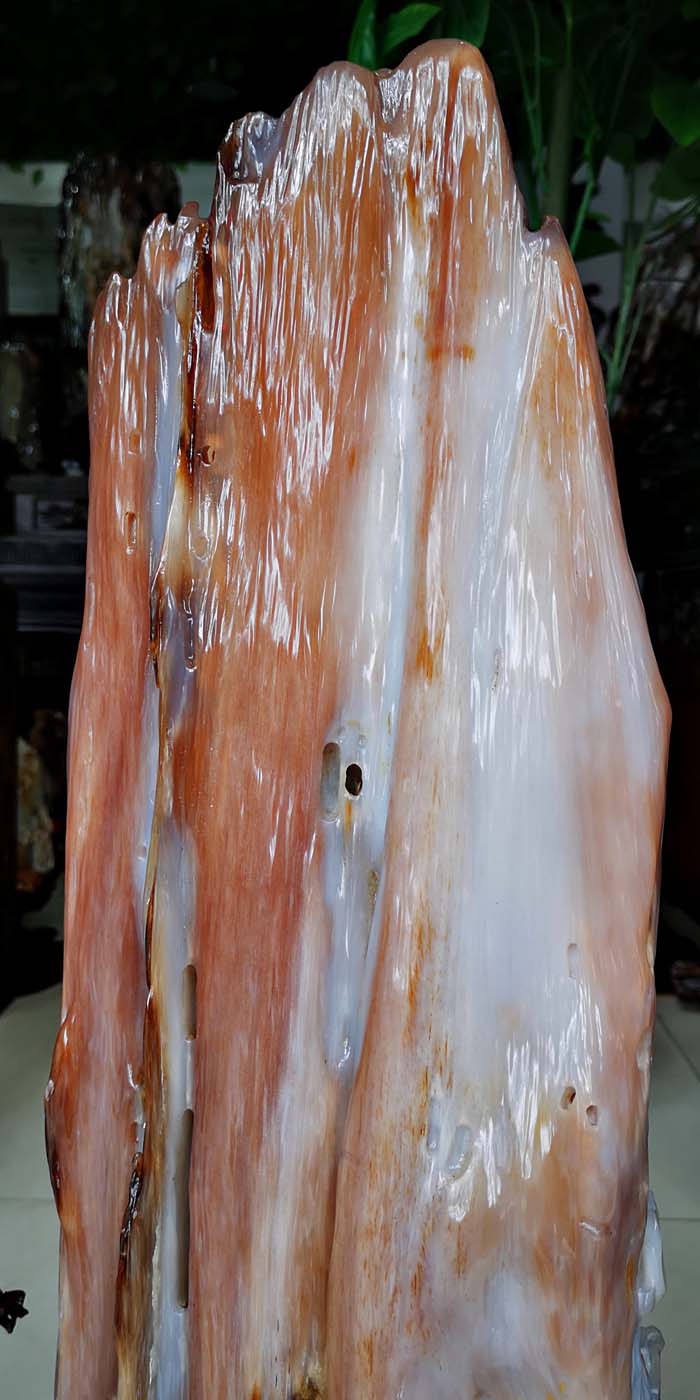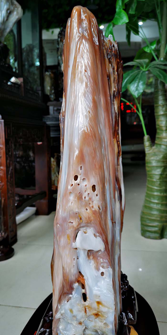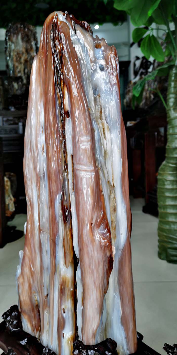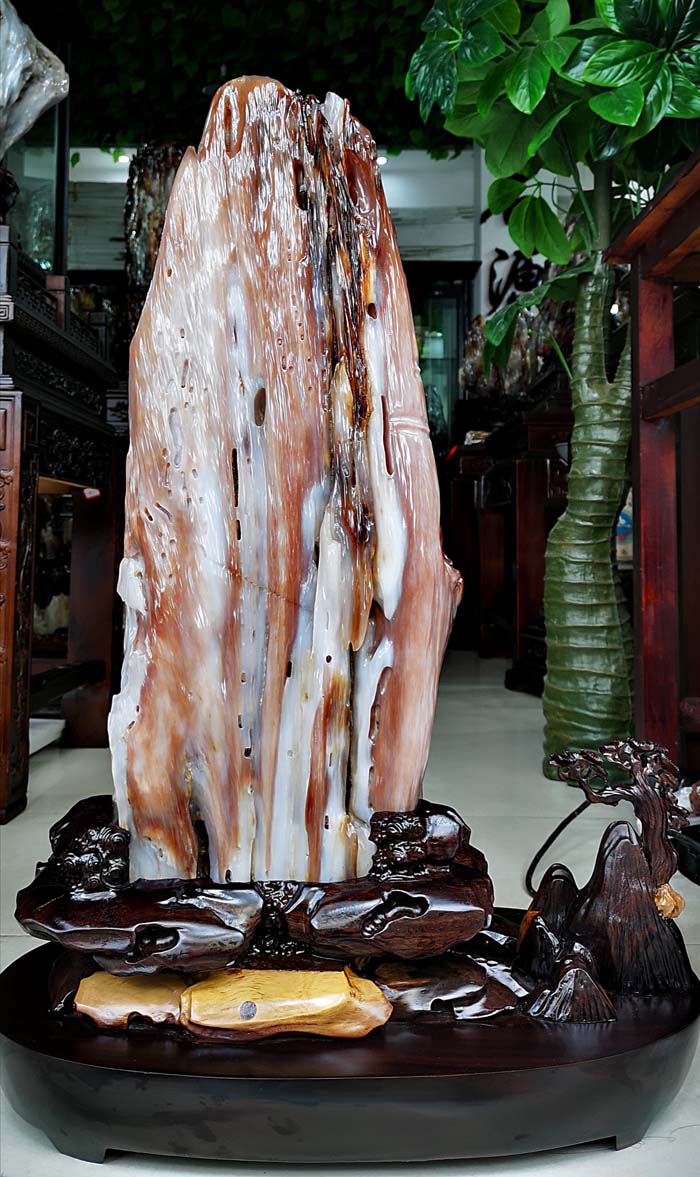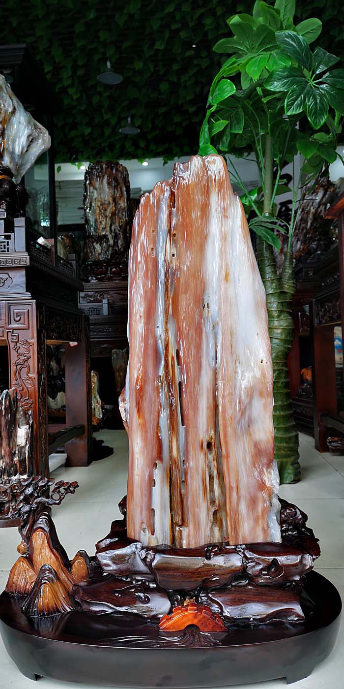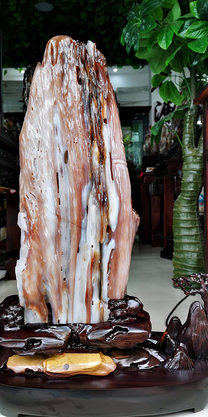 老坑冰种缅甸树化玉,玉化透,色彩清爽干净。山峰形状自然完美,有山有水此宝贝作为镇宅或摆放办公桌上。玄关,客厅转运招财的风水石首选,寓意生意兴隆,财源滚滚,事业兴旺。事业顺风顺水。配送红木材质精雕花底座